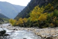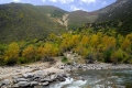 车继续前进,沿着山谷,拐向一边就上了波瓦山(4400多米),上面有热乌寺,是面前藏传佛教中唯一的白教与黄教共享的寺庙;翻过波瓦山,汽车沿山谷、河道继续前进,在一片山谷的银杏树前停下,大家在这里拍照。20分钟后上车继续前进,12点到达日瓦(香格里拉乡),在这里白师傅要大家准备这两天的吃、喝物品;因为亚丁没有东西补充。